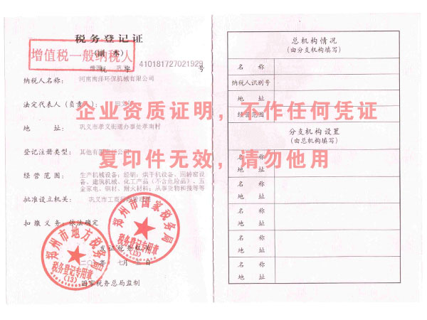 公司(sī)稅務(wù)登(dēng)記證(zhèng)