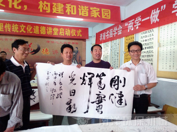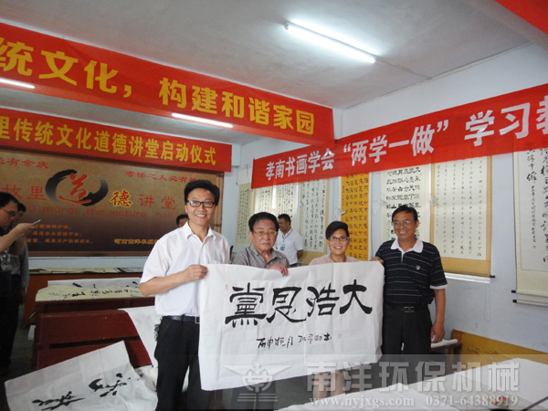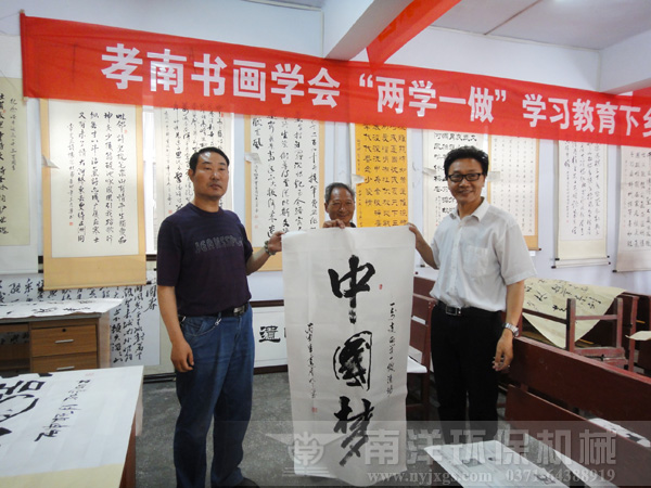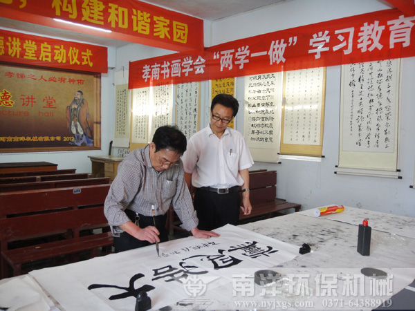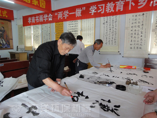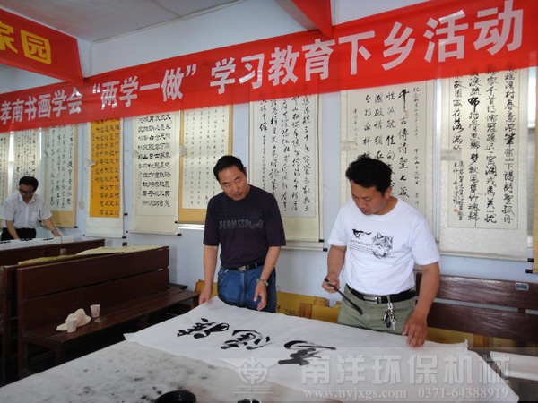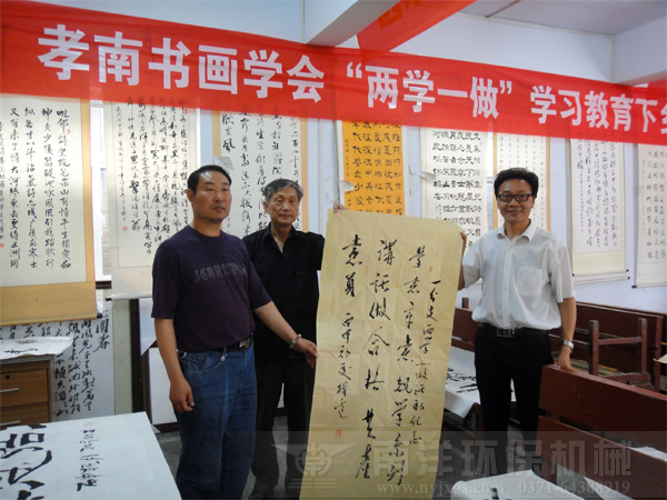 2016年5月25日,孝南書(shū)畫學會來我公司開展“兩學一做”學習教育下鄉活動,公司領導以及黨員代表給予了熱情(qíng)的接待(dài)與支持,將公司傳統文化講堂布置整理,供書(shū)法家揮毫潑(pō)墨,進行書法創作,宣傳“兩學一做”精神。我公司員工在欣賞作品感歎中華(huá)書法藝(yì)術魅(mèi)力的同時,也在(zài)活動中深刻學習了“兩學一做”的核(hé)心內容。